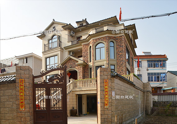 占地面積 134.8㎡ 土建造價 45.0萬 三層中式田園風格別墅